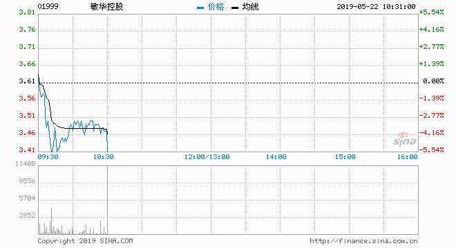 敏華(01999)現(xiàn)報3.45元,跌4.43%,盤中低報3.4元,暫成交達(dá)202萬股,涉資704萬元。