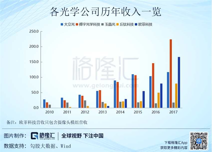 從各個(gè)參賽選手的營收變現(xiàn)來看,舜宇光學(xué)就像一個(gè)強(qiáng)力的選手,隨著時(shí)間的磨礪,開始在這場比賽中嶄露頭角,成為光學(xué)行業(yè)的龍頭之一。