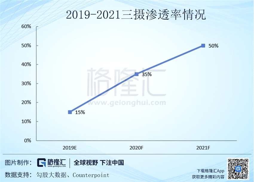 從各個(gè)手機(jī)品牌廠商攝像頭的升級趨勢來看,19年三攝的快速滲透已經(jīng)成為大的趨勢,智能手機(jī)的鏡頭升級也將進(jìn)一步的帶動鏡頭需求量的提升,此外TOF和7P鏡頭的運(yùn)用也將進(jìn)一步的提升單機(jī)鏡頭的ASP,而舜宇背靠大部分安卓客戶將首當(dāng)其沖受益當(dāng)中。