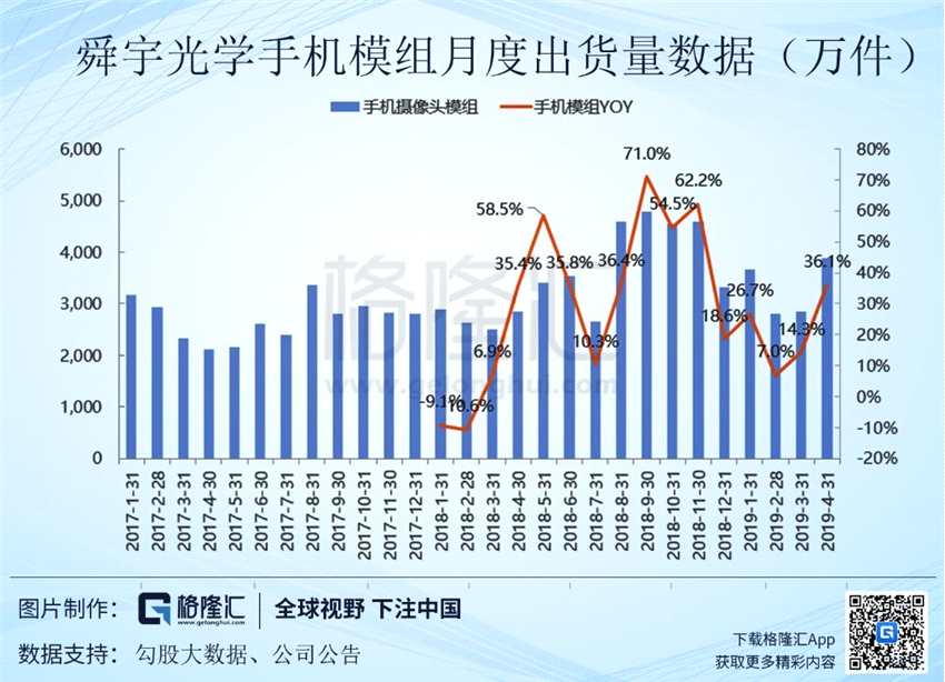 從公司的歷史數(shù)據(jù)來看的,公司模組的毛利隨著良率和開工率的爬升,都能夠在下半年得到有效的提升。隨著19年新廠的建設(shè)完畢和自動化產(chǎn)線的改造完成,舜宇的實(shí)力才能夠進(jìn)一步的展現(xiàn)出來,19年上半年其模組的毛利率仍然會進(jìn)一步的承壓,尤其是在匯率出現(xiàn)大幅度的波動下。