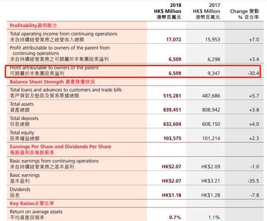 公司股價(jià)下跌一方面因?yàn)楣緲I(yè)績(jī)大幅下滑,2018年集團(tuán)歸屬于股東溢利65億港元(下同),同比下降30.4%。東亞銀行非利息收入低于該行原預(yù)期28%,因交易收入疲弱,總體非利息收入按半年下跌18%。