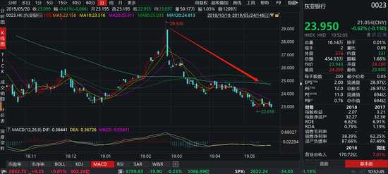 昨日,受到李國(guó)寶退休風(fēng)波,東亞銀行昨日一度跌2%,收跌1.23%,今日再度逆市走低,現(xiàn)跌0.62%,報(bào)價(jià)23.95港元。不過(guò),我們發(fā)現(xiàn),東亞銀行自從公司2月27日公布業(yè)績(jī)后,公司股價(jià)已經(jīng)累跌16%,市值蒸發(fā)136億港元。