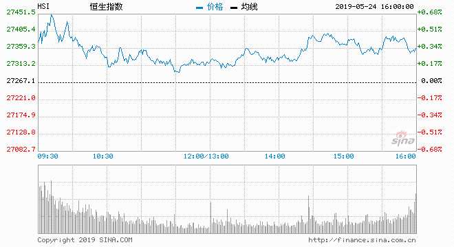 港股昨日急挫438點后,今日受上述消息刺激而反彈,高開101點報27368點,多只科技股有追捧,令港股最多再漲190點報27457,惟市場對后市看法審慎,加上重磅股表現(xiàn)呆滯,令港股升幅曾收窄至不足百點.午后發(fā)改委宣布多項經(jīng)濟措施,刺激部分板塊上漲,港股全日最終報27353點,彈86點或0.32%,全日主板成交760.07億元減少23.22%.國企指數(shù)收10445,升0.43%或升44點。