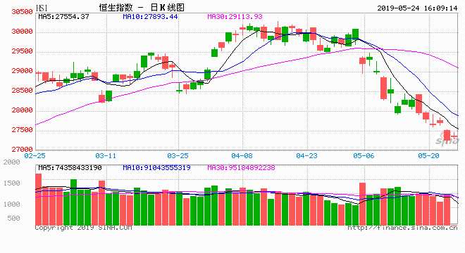 騰訊(0700)昨再跌0.4%,連跌第7日,再錄得7個月最長跌勢,昨收報324.8元,由4月中高位400.4元,該股已累計跌19%(小浪注:市值從高位蒸發(fā)7198億港元,折合917億美元)。大市靠中移動(0941)及友邦(1299)支撐,兩股分別升1.8及0.7%。市場對華為的憂慮略為紓緩,手機及5G股普遍反彈,京信(2342)升2%,瑞聲(2018)升1.8%。