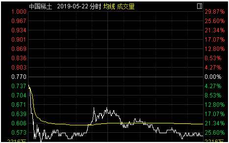 不過(guò)在創(chuàng)下翻倍的奇跡后,中國(guó)稀土股價(jià)在第二天出現(xiàn)大跌。5月22日收盤,中國(guó)稀土報(bào)收0.56港元,較前一日下跌27.27%。