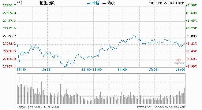摘要: 英美股市因假期今日休市,港股今早依然低開(kāi)114點(diǎn)報(bào)27239,一度低見(jiàn)27105,走低248點(diǎn),再創(chuàng)約四個(gè)月低。午后在A股回勇下,港股曾由跌轉(zhuǎn)升最多17點(diǎn)報(bào)27371,不過(guò)及后港股無(wú)法企穩(wěn)再倒跌,最終