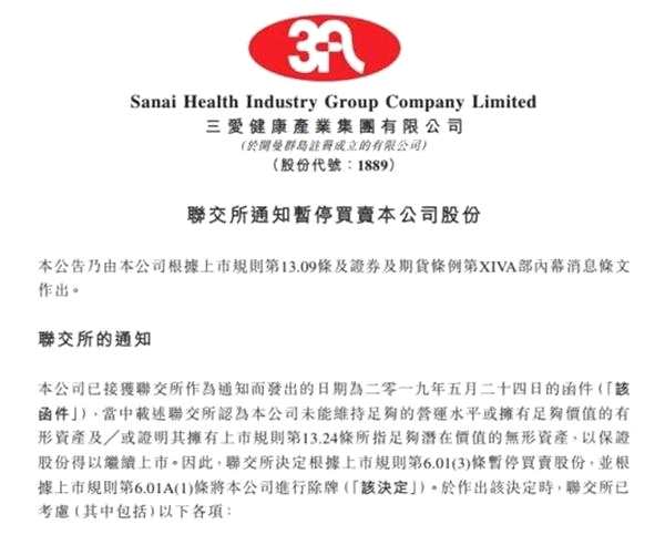 由此,留給三愛健康集團的時間或許僅有18個月。據(jù)公司公告,停牌之后,公司須在18個月糾正期間重新遵守上市規(guī)則,即公司須有足夠的業(yè)務(wù)運作或擁有相當價值的有形資產(chǎn)或無形資產(chǎn)。倘若公司未能在2020年11月23日前達成上述要求,港交所將對公司進行摘牌。