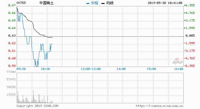 中國稀土(00769) 0.59元 跌6.35%