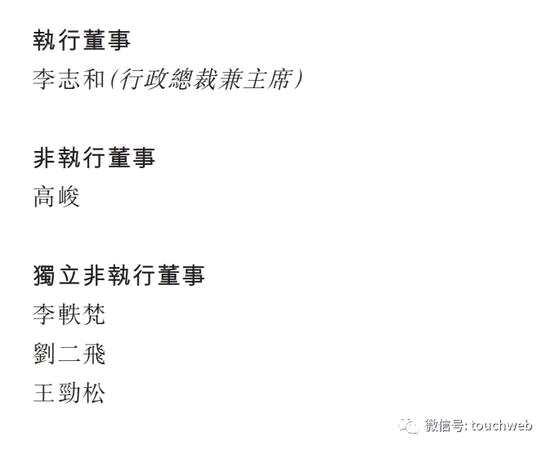 方達(dá)控股的執(zhí)行董事為李志和(行政總裁兼主席);非執(zhí)行董事為高峻;獨(dú)立非執(zhí)行董事為李軼梵、劉二飛、王勁松。