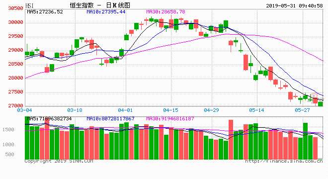 5月31日消息,美股周四小幅收高。投資者仍在關(guān)注全球經(jīng)濟增長前景與緊張的經(jīng)貿(mào)關(guān)系。美國國債收益率維持在2017年以來的最低水平。美國一季度GDP增長3.1%。今日開盤,港股恒生指數(shù)低開0.41%,報27002.96點;國企指數(shù)跌0.3%,報10418.59點;紅籌指數(shù)跌0.13%,報4289.50點。
