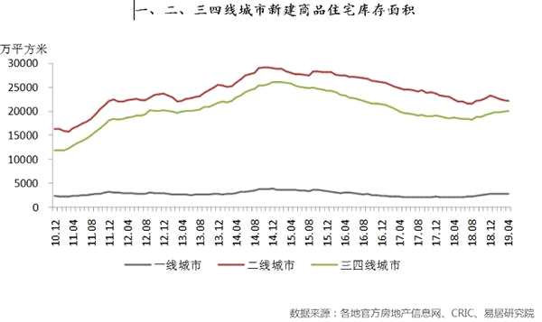 從城市分類來看,2019年4月份,一、二、三四線100個城市新建商品住宅存銷比分別為13.5、9.2和10.5個月。