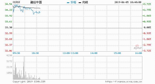 融創(chuàng)中國 (01918) 34.40元 升3.30%