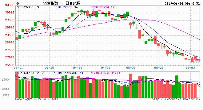 摘要: 6月6日消息,美股周三收高,延續(xù)了昨日上漲勢頭。美聯(lián)儲主席鮑威爾暗示可能在經(jīng)濟狀況弱化時降息,令市場得到提振。今日開盤,港股恒生指數(shù)高開0.15%,報26935.87點;國企指數(shù)跌0.04%,報103