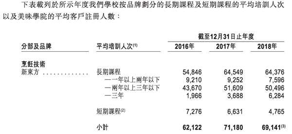 從平均培訓人次來看,新東方烹飪也為中國東方教育貢獻大部分客戶。不過,2018年,新東方烹的平均培訓人次減少了約2000人次,這是因為短期課程培訓人次減少。
