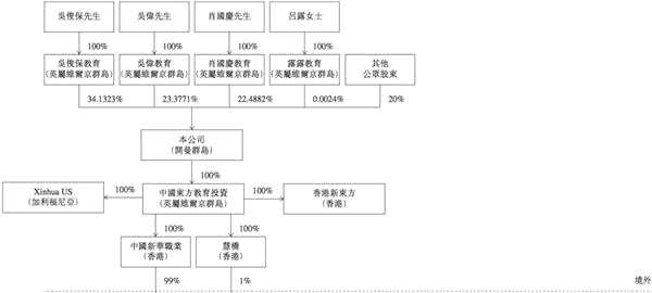 中國東方教育的國內(nèi)實體為安徽新華教育,前身為吳俊保、吳偉和肖國慶創(chuàng)辦的新華投資。