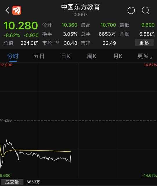 今天早上一開盤,中國東方教育股價就暴跌超過12%。雖然隨后有所反彈,但截至午間收盤,公司股價依然大跌8.62%,市值蒸發(fā)約21億港元。