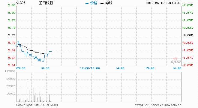 摘要: 工商銀行(01398)H股現(xiàn)跌1.75%,報5.63元,盤中低見5.63元,穿250天線(5.688元);成交約5703萬股,涉資3.23億元。A股(滬:601398)現(xiàn)價5.72元(人民幣.下同),