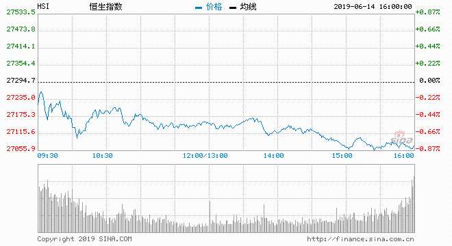 摘要: 6月14日消息,港股繼續(xù)向下尋底,周四恒指一度低見26825點(diǎn),其后跌幅收窄,重上27000點(diǎn),收市恒指跌0.05%,報(bào)27294.7點(diǎn)。今日早盤,恒指走低。午后恒指繼續(xù)擴(kuò)大跌幅,截至收盤,恒指跌0.