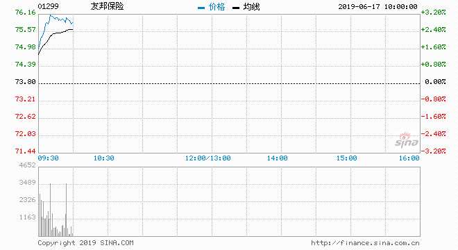 友邦保險(xiǎn)(01299)現(xiàn)價上升2.17%,報(bào)75.4元,收復(fù)十天線(74.59元)及廿天線(75.09元),暫升幅最大藍(lán)籌;成交約267萬股,涉資1.99億元,主動買盤60%。