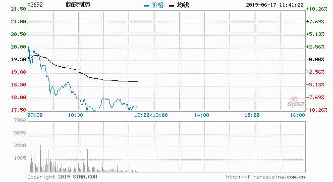 翰森制藥上市翌日高位回吐 現(xiàn)跌近9.74%