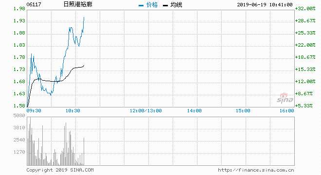 新浪鋼管 6月19人消息,中國(guó)最大的糧食及木片進(jìn)口港日照港(600017)裕廊今日首日上市,股價(jià)大漲24%,暫成交1973萬(wàn)港元,最新總市值29.9億港元。