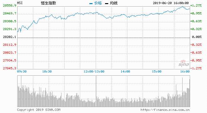 聯(lián)儲局議息聲明暗示今年稍后可能減息,支持美股周三(19日)向好,但升幅不算大.港股今日隨外圍走高,高開106點(diǎn)報(bào)28308點(diǎn),在A股上升帶動下,港股愈升愈有,重磅股友邦(01299)、內(nèi)險股及本地地產(chǎn)股發(fā)力,令恒指最高見28563升360點(diǎn),創(chuàng)一個月高,破百天線(約28508)及五十天線(約28509),最終收報(bào)28550點(diǎn),升348點(diǎn)或1.23%,全日成交977.59億元減少約7%.國企指數(shù)方面,收報(bào)10922,升1.46%或升157點(diǎn)。