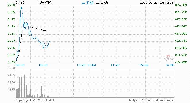 紫光控股(00365)現(xiàn)價(jià)上升40.48%,報(bào)2.36元,盤中高見2.59元,升破百天線(約1.958元);成交約177萬股,涉資381萬元。