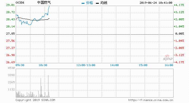中國(guó)燃?xì)猓?0384) 28.650元 升2.87%