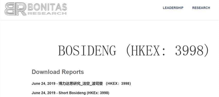 沽空機(jī)構(gòu)Bonitas狙擊波司登,指公司涉及管理層腐敗及業(yè)績(jī)欺詐,周一公司股價(jià)大跌25%。公司周一中午已申請(qǐng)暫停股票買賣,以待刊登相關(guān)澄清公告。