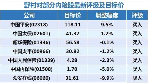 以下是該行對部分內(nèi)險(xiǎn)股最新評(píng)級(jí)及目標(biāo)價(jià):