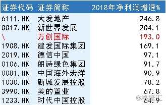 其中,利潤增速更是呈現(xiàn)逐年遞增的態(tài)勢,截至2018年,萬創(chuàng)國際的利潤增速為193%,單年增長接近兩倍。這相較于大型龍頭房企,萬創(chuàng)國際的成長性可謂是分突出。以香港上市中內(nèi)房股的凈利潤增速排名,萬創(chuàng)國際若上市可直接進(jìn)入前三。