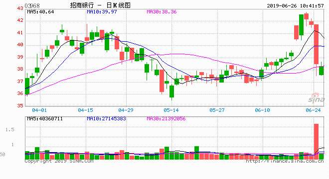 【招商銀行(600036)、股吧】(03968)H股昨日急挫逾7%后,現(xiàn)續(xù)跌2.34%,報37.6元;成交約235萬股,涉資8913萬元.盤中低見37.55元,暫最差國指股。