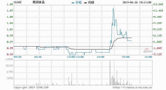 摘要: 雨潤食品(01068)股價表現(xiàn)反復,早段一度跌至0.93元,創(chuàng)5個月新低,惟午后突見資金追捧,一度抽升近兩成,高見1.15元,突破破10天線(1.005元)、20天線(1.055元)及250天線(1.