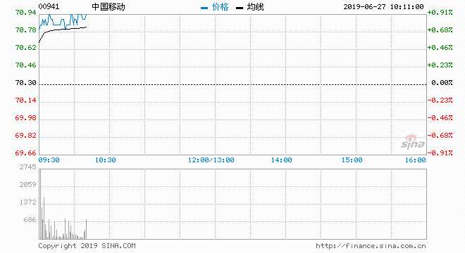 中國移動(00941)現(xiàn)價上升0.85%,報70.9元;成交約111萬股,涉資7861萬元。