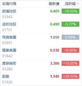 濠賭股全線受捧。永利澳門(1128.HK)漲5.2%;新濠國際(0200.HK)、澳博控股(0880.HK)、美高梅(2282.HK)均漲超4%。