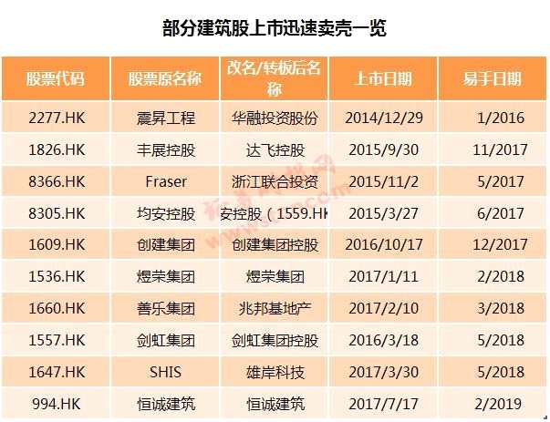 時(shí)報(bào)君粗略統(tǒng)計(jì)數(shù)據(jù),由2013年至2018年已有逾百家建筑股上市,其中有超過3成已經(jīng)賣殼,即股權(quán)易手,部分上市剛一年就賣殼,最長只有2年就選擇賣殼,這意味著建筑股上市的目的可能并非為了發(fā)展,而是為了賣殼,部分集資金額僅千萬級(jí)別,不免讓外界質(zhì)疑其上市真正目的。