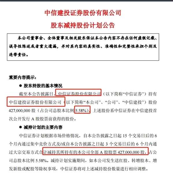 大股東之一,也是A股的龍頭券商——中信證券,要清倉(cāng)減持中信建投,一股不留。