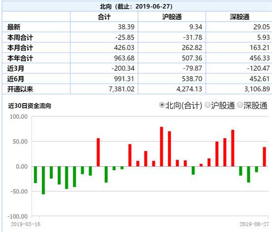 北向資金6月累計凈流入426億元 創(chuàng)2019年2月以來新高