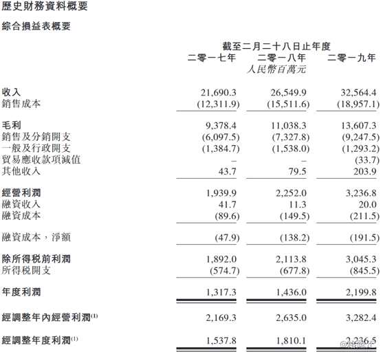 截至2016至2018財年,公司實現(xiàn)營收分別為216.9億元、265.5億元及325.6億元;同期毛利率分別為43.24%、41.58%及41.79%。