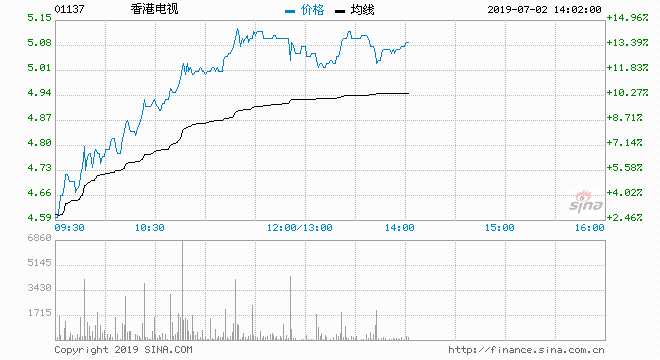 摘要: 香港電視(01137)現(xiàn)價升12.28%,報5.03元,盤中高見5.15元,創(chuàng)下近20年高位;成交約993萬股,涉資4896萬元.對上一次高位于1999年12月時創(chuàng)下5.5元歷史新高。股份近日有資金追