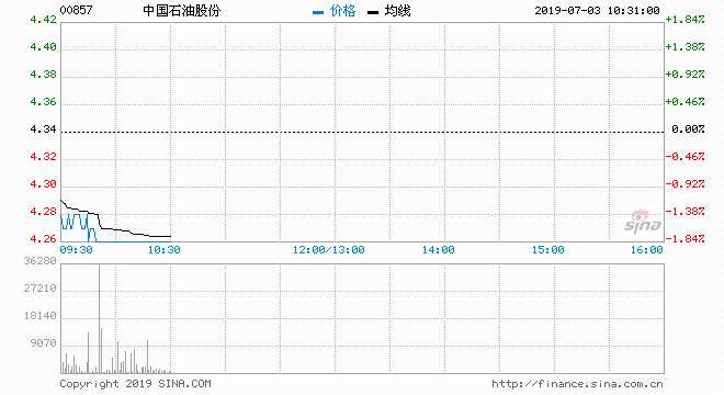 中石油(00857)H股現(xiàn)價(jià)跌1.38%,報(bào)4.28元;成交約634萬股,涉資2720萬元。