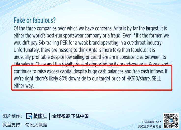 GMT怎么說的,安踏要么是全球經(jīng)營最好的體育用品公司,要么就是一個(gè)十足的騙子。