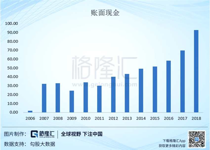 在利潤的帶動(dòng)下,公司賬上的現(xiàn)金也是節(jié)節(jié)高升。