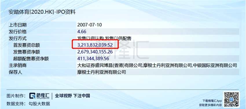 安踏2007年7月上市,通過IPO一共募集了36.43億港幣。