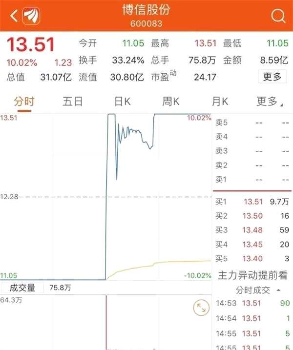 A股市場上,博信股份股價開盤一字跌停,午后打開跌停,之后直線封板,全天上演天地板,振幅高達20%。截至收盤,公司股價報13.51元,換手率高達33.24%。