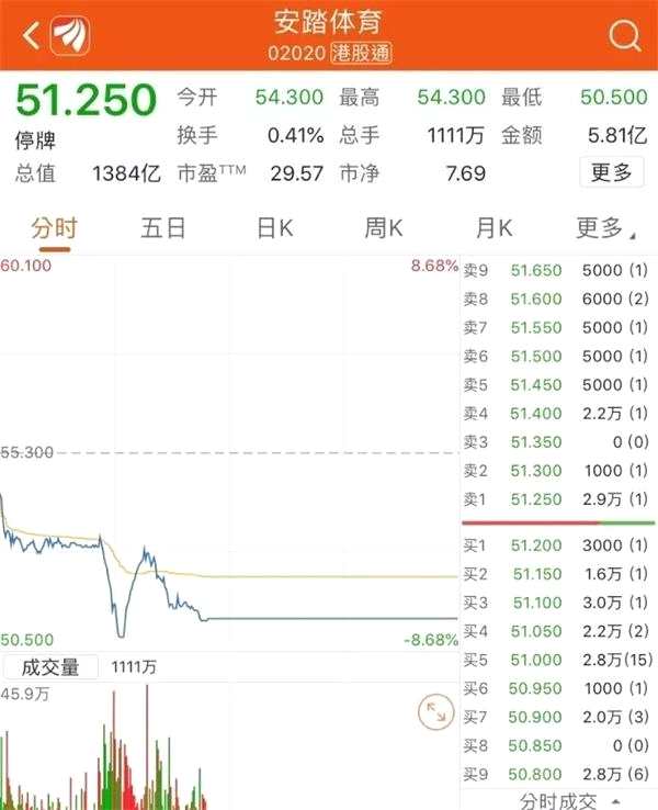 午間,安踏體育公告,公司股票在港交所短暫停牌,股票午后停牌。