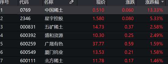江西省委書(shū)記表示,把稀土產(chǎn)業(yè)作為國(guó)之重器、戰(zhàn)略產(chǎn)業(yè)來(lái)抓,稀土概念股集體飆升。其中,中國(guó)稀土飆升13%,星宇控股漲5.33%,五礦稀土(000831)、盛和資源(600392)漲2.5%。