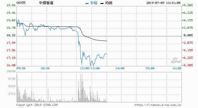 中煙香港兩連升累漲32.95%后 現(xiàn)急回8%