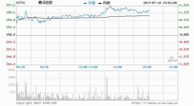騰訊控股午后升幅擴(kuò)大 現(xiàn)揚(yáng)近2%重上百天線