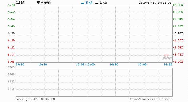 快訊:中集車輛今日上市 低開7.52%%報5.9港元